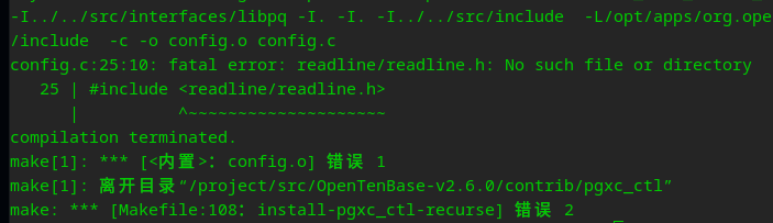 11. 重新编译 OpenTenBase项目, 和 readline 相关报错不存在了, 重新编译后, 第一次 make 可以成功完成了.
